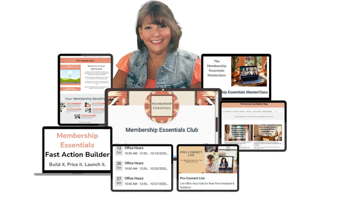 The Membership Essentials Club gives you the essential steps, structure, and templates to build and launch a SIMPLE, scalable support membership without tech overwhelm, or a lot of bells and whistles or piecing it all together alone.